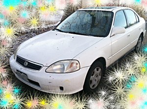 Durable Honda genes aside, Snowbell’s magic is a little less tangible than a well-built transmission. Looking at the photo you’re probably not impressed by the white sedan that looks like it hasn’t been washed in the past year. Can I help it if my favorite parking spot at work is near a tree full of angry little birds with questionable digestive issues?